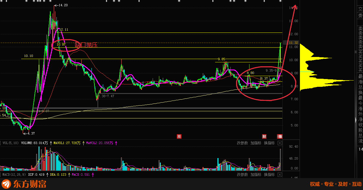 缺口抛压,今天搞个烂板,也许是洗获利盘,还有套牢盘。换手这么大,量也有,也许明天就控盘缩量拉升了,也许还要一洗今天进来的散户。