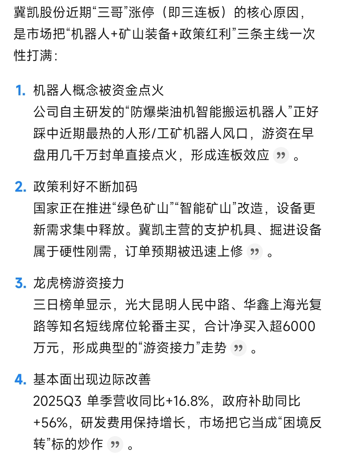 逻辑+换手+才三个板+今天连板梯队很强+一上午缩量主力净流出不到3000w。等于