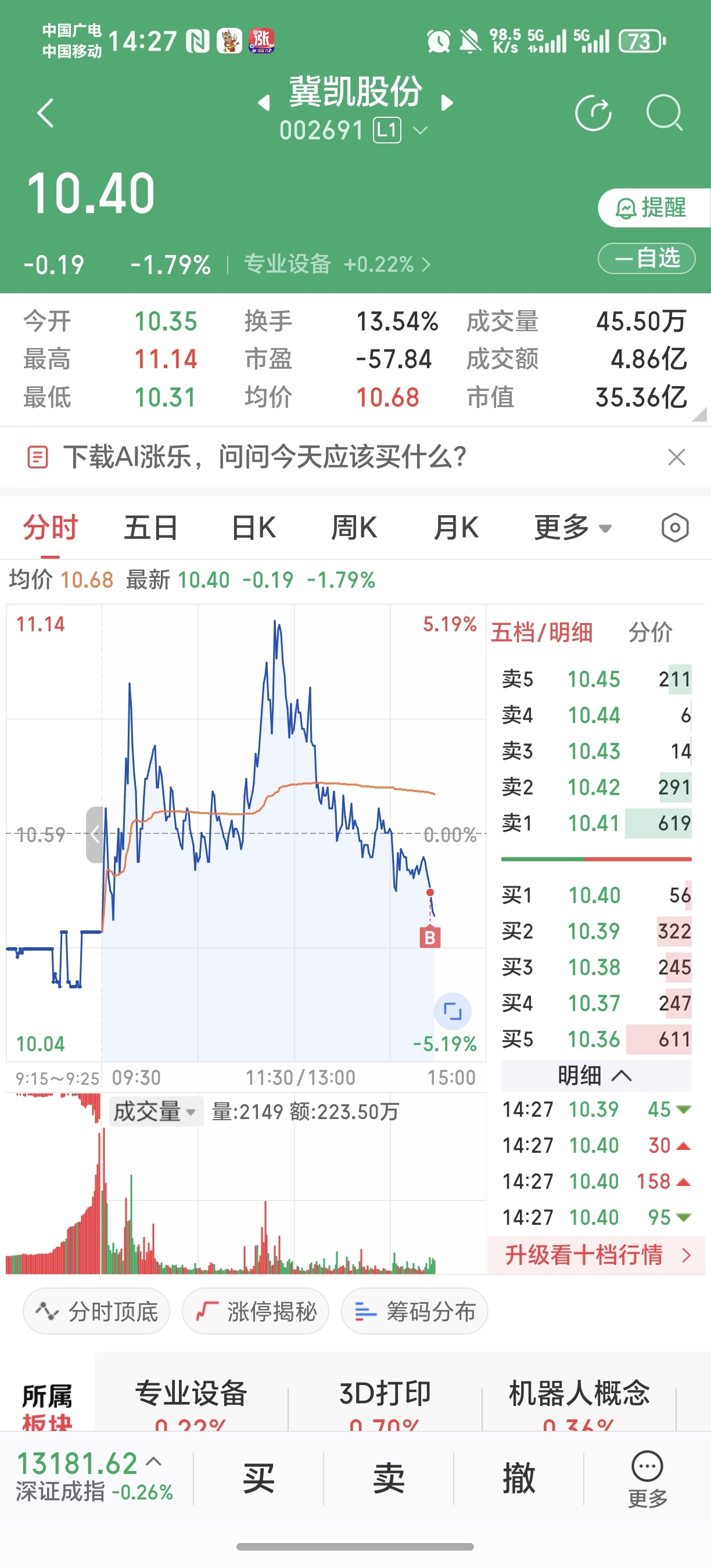 $冀凯股份(SZ002691)$ 完了,咋去哪儿都是套我啊