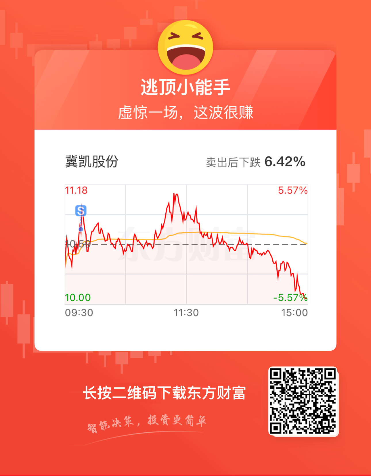 $冀凯股份(SZ002691)$ 还以为卖飞了呢,没想到是赚了