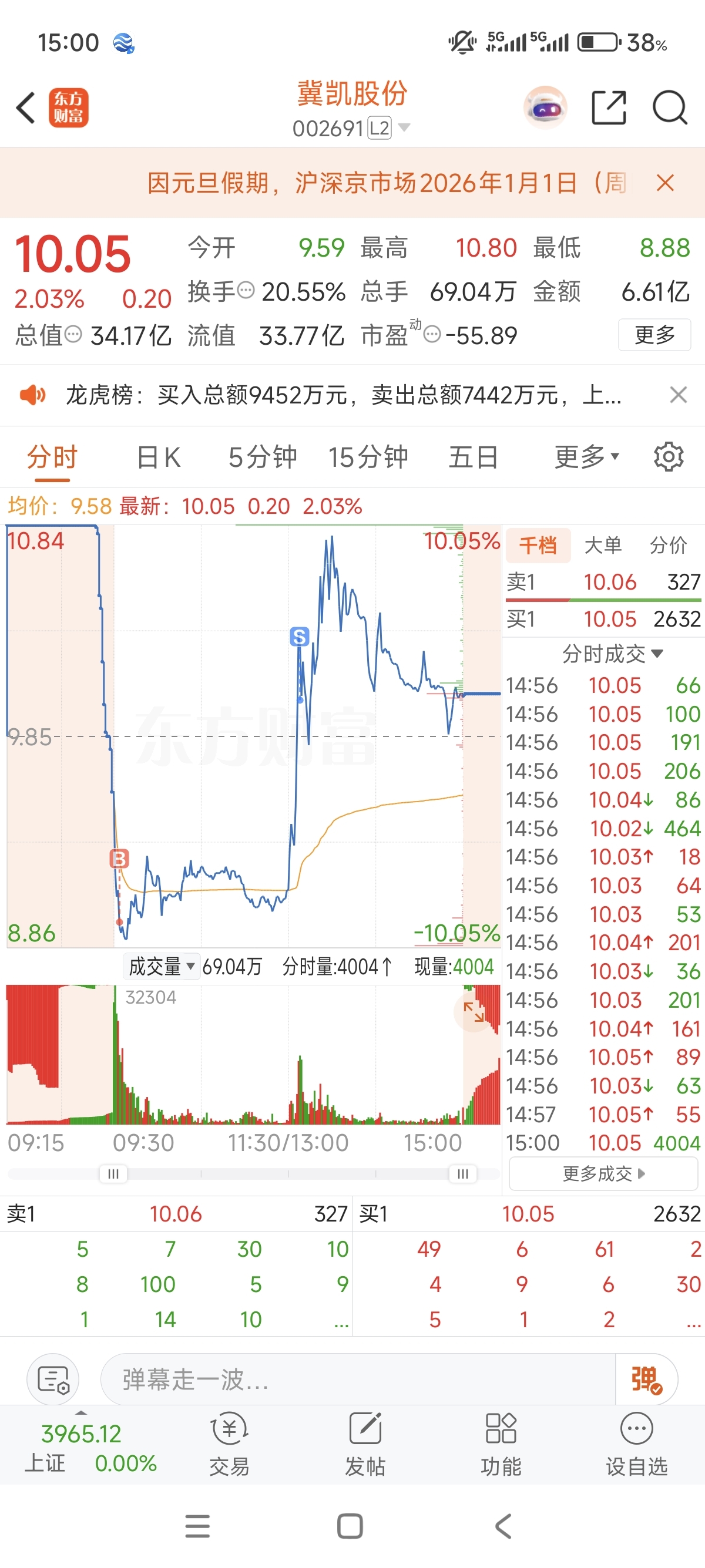 $冀凯股份(SZ002691)$ 明天平开就行,放我走。今天我知道错了,昨天打板,今天还敢补仓