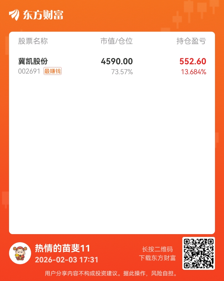 温馨提示: 1.根据《证券法》规定,禁止编造、传播虚假信息或者误导性信息,扰乱证券市场;2.用户在本社区发表的所有资料、言论等仅代表个人观点,与本网站立场无关,不对您构成任何投资建议。用户应基于自己的独立判断,自行决定证券投资并承担相应风险。《东方财富社区管理规定》