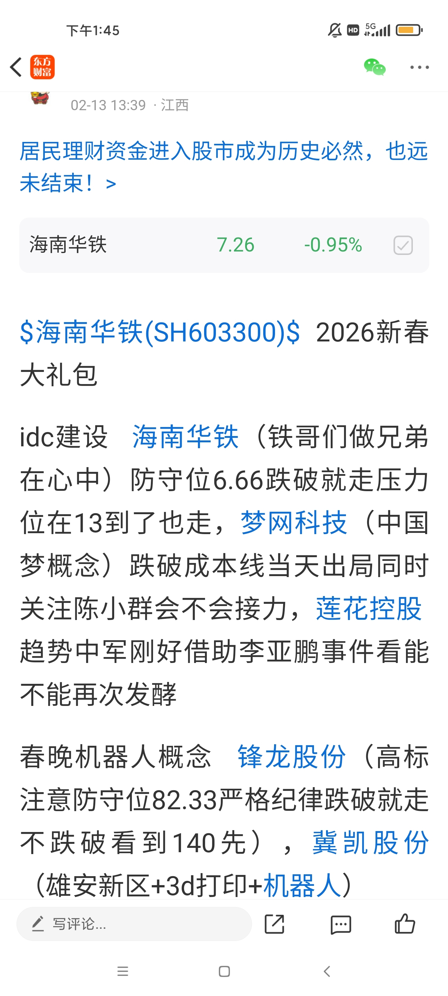 温馨提示: 1.根据《证券法》规定,禁止编造、传播虚假信息或者误导性信息,扰乱证券市场;2.用户在本社区发表的所有资料、言论等仅代表个人观点,与本网站立场无关,不对您构成任何投资建议。用户应基于自己的独立判断,自行决定证券投资并承担相应风险。《东方财富社区管理规定》