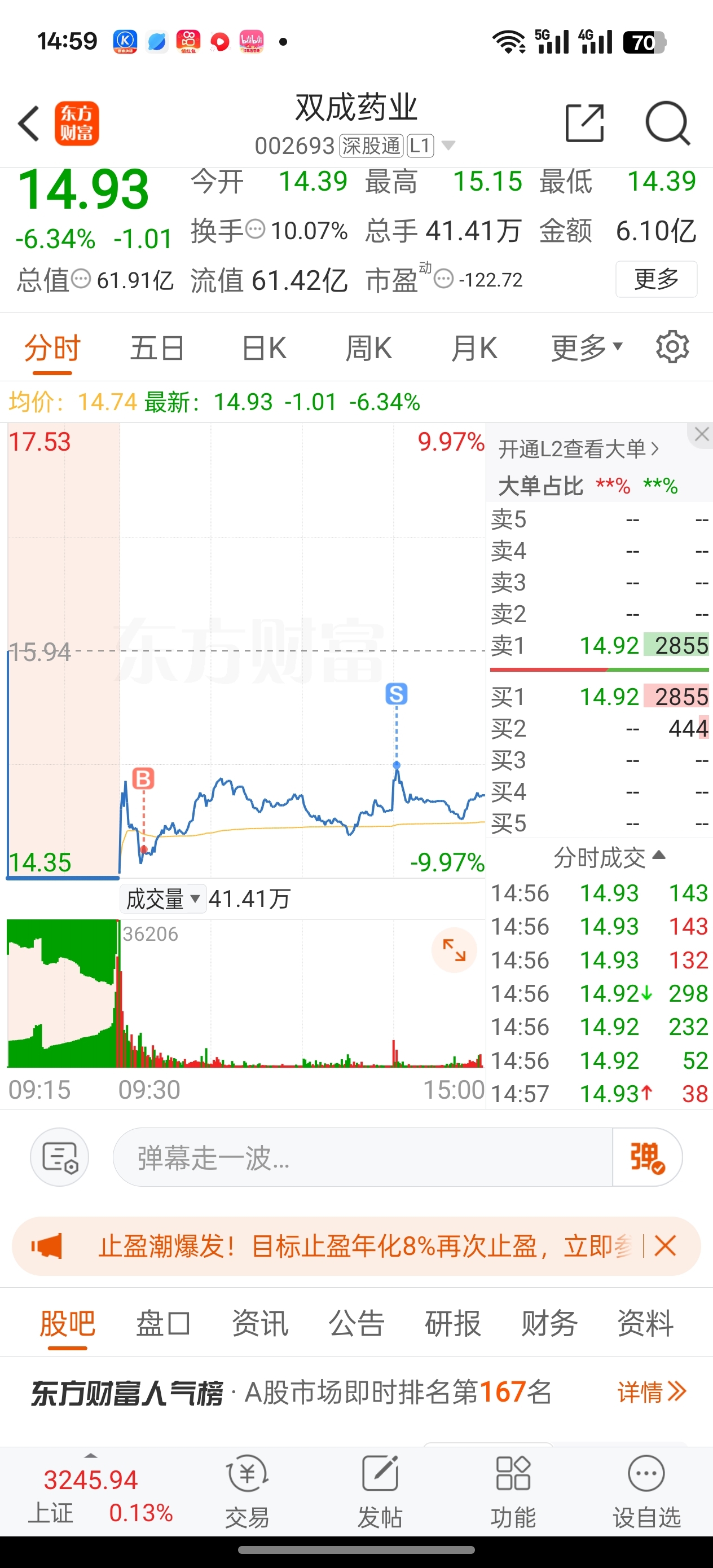 $双成药业(SZ002693)$ 这个t抓的如何