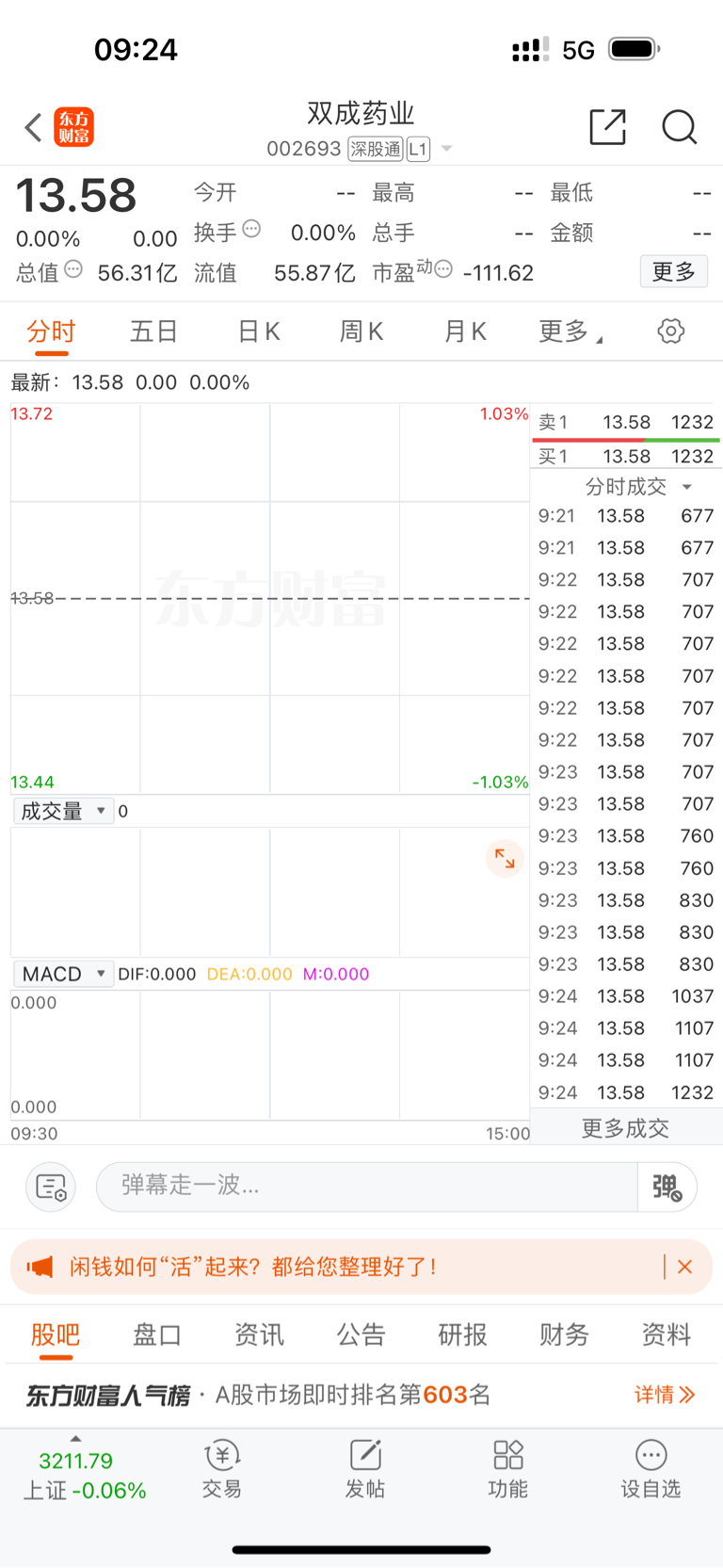 $双成药业(SZ002693)$ 怎么回事,成交量挺大的,老庄今天照例砸,有人来接了?