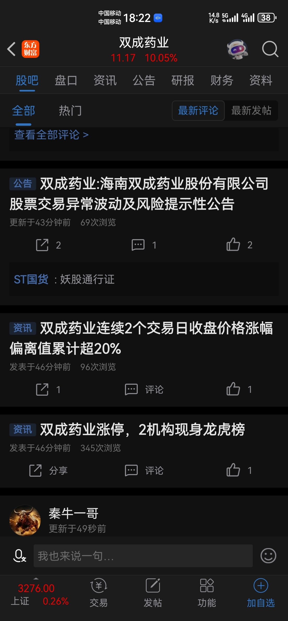 温馨提示: 1.根据《证券法》规定,禁止编造、传播虚假信息或者误导性信息,扰乱证券市场;2.用户在本社区发表的所有资料、言论等仅代表个人观点,与本网站立场无关,不对您构成任何投资建议。用户应基于自己的独立判断,自行决定证券投资并承担相应风险。《东方财富社区管理规定》