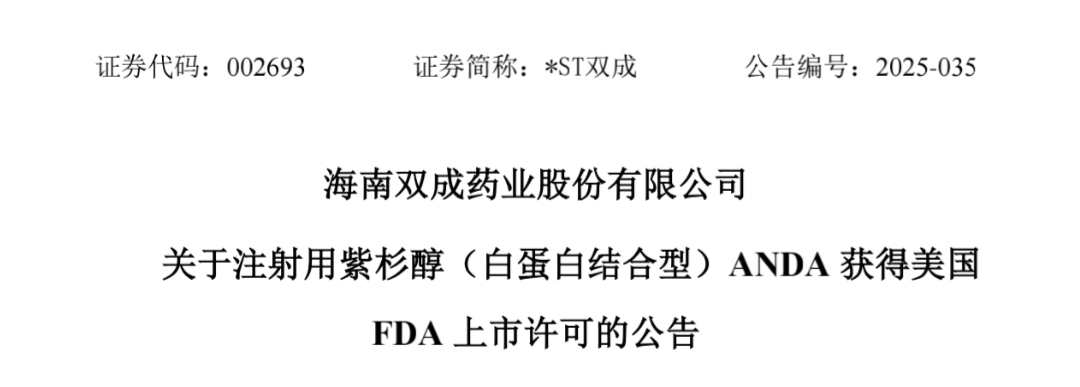 图二:关于注射用紫杉醇(白蛋白结合型)ANDA获得美国FDA上市许可的公告。