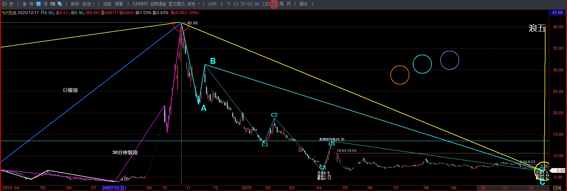 温馨提示——冬天已至,春天还远吗?2026年春天的曙光即将降临之际,为便于各位在新的一年里有的放矢地"袖子加油干",现以1分钟最大的放大倍数窥探002693的微观结构,清晰地确立了6.32就是四浪ABC调整浪的低点。二十届四中全会是现代化大视野的方向指引,十五五规划是大视野的阶段目标,微观则是我们行动上的具体工作的时间切入点。祈望你们能在即将降临的新的一年中能抓住自己心中"袖子加油干"的机会