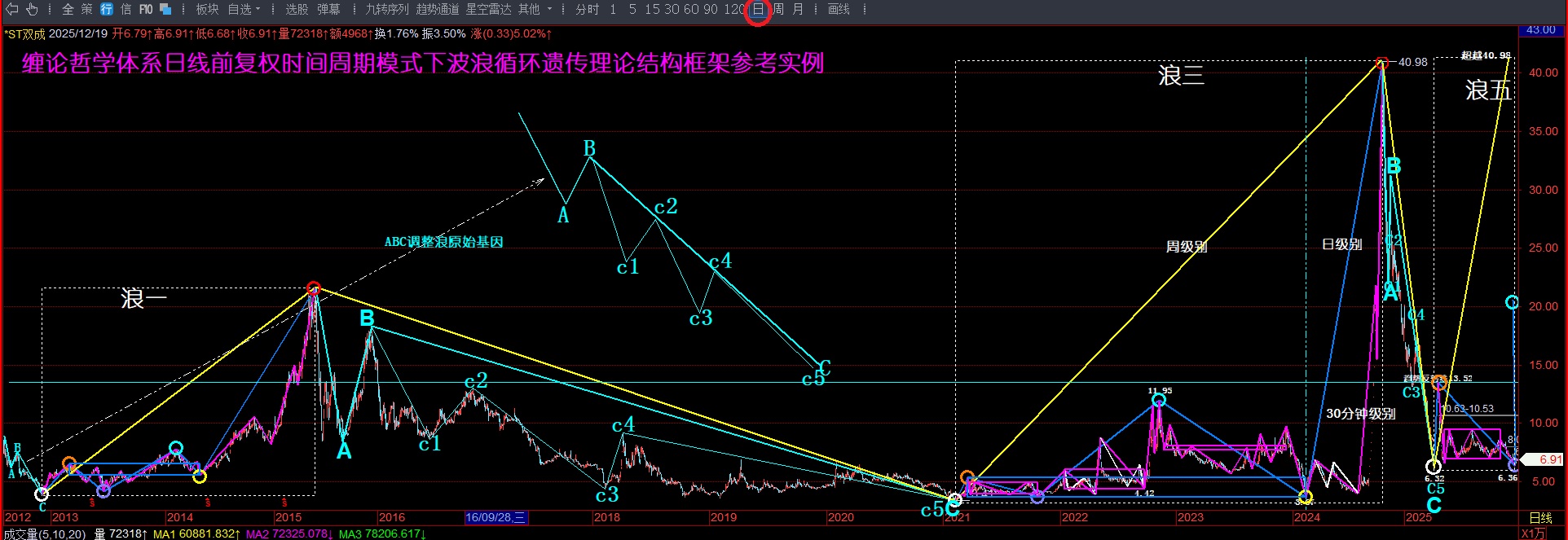 缠论哲学体系日线前复权时间周期模式下波浪循环遗传理论结构框架实例参考