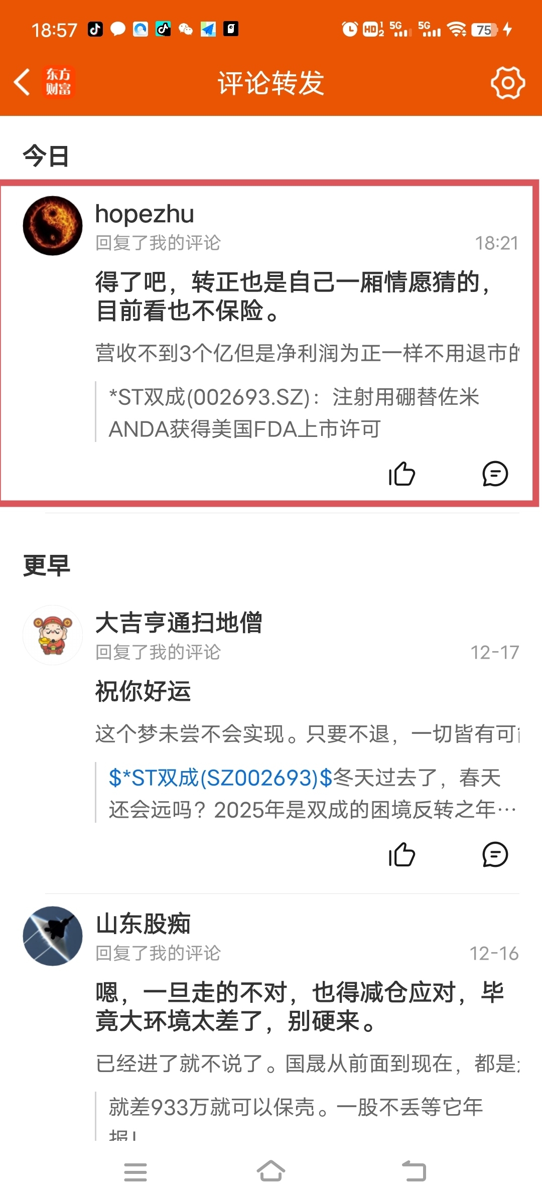 $*ST双成(SZ002693)$ 这个贴吧里的某些人这么狭隘和玻璃心吗?说错了还不能指正。善意的指正后就拉黑我。有见过无理取闹的,见过上窜下跳唱空的。但是真没见过一言不合就拉黑的。这种度量怎么纳财?