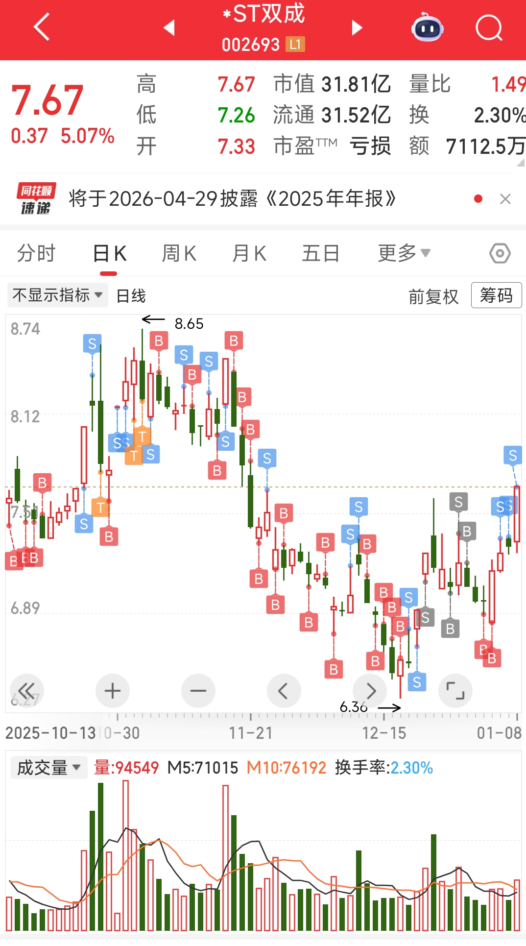 $*ST双成(SZ002693)$ 低温慢熟,味道好,连续涨停板要来了,姐姐来了,嘻嘻 #炒股日记# #收盘点评# #复盘记录#