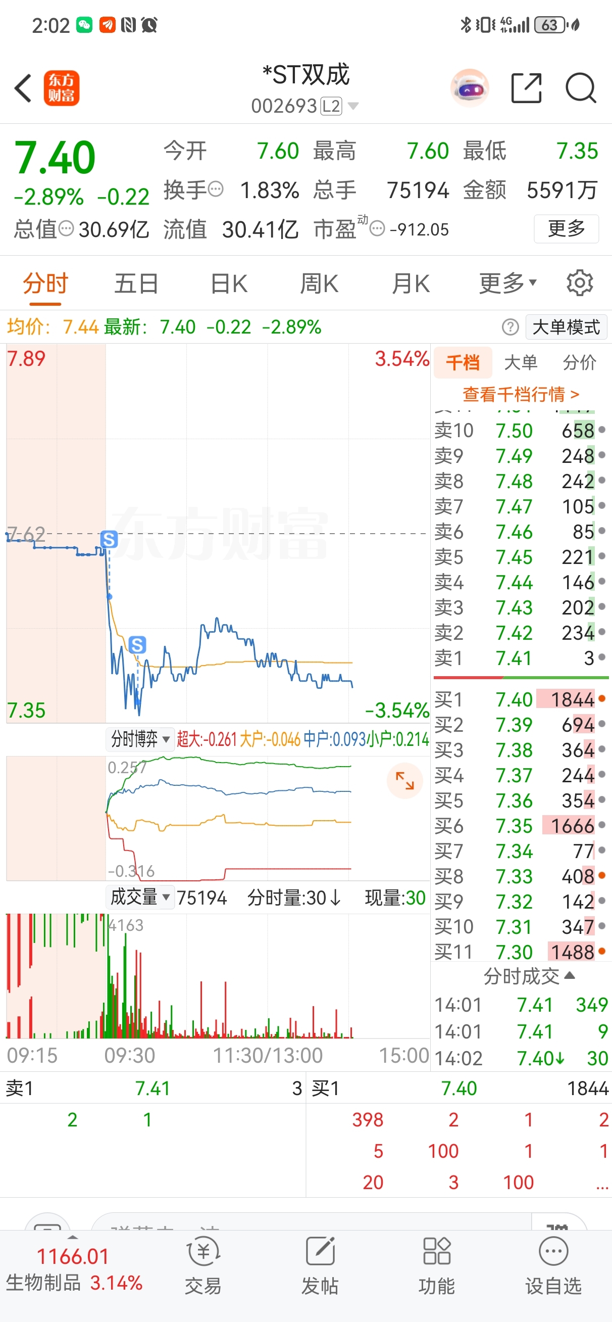 $*ST双成(SZ002693)$ 昨天买错了今天走了,气死我了