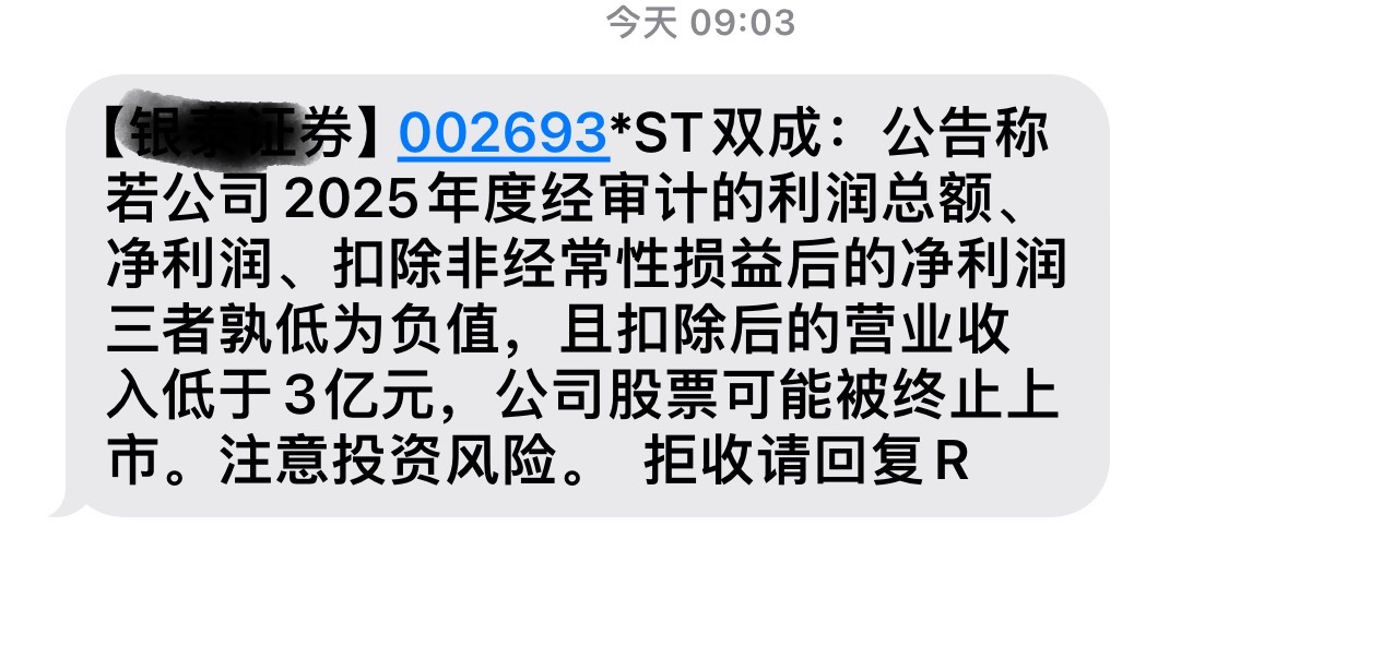 $*ST双成(SZ002693)$ 什么意思这是