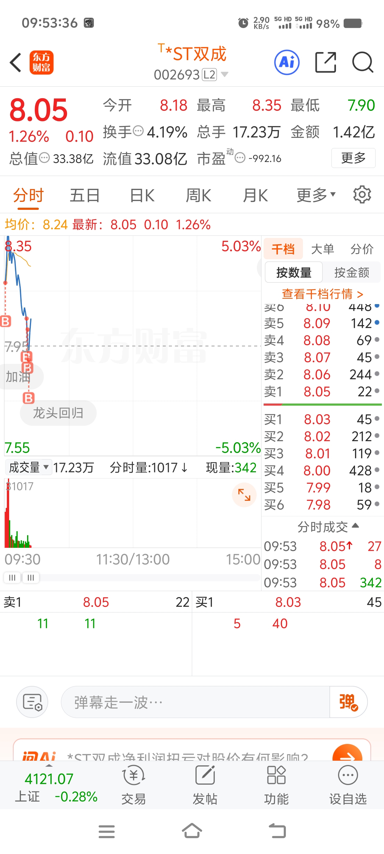 $*ST双成(SZ002693)$ 这股人真是琢磨不透,冒着退市风险敢拿股,不退市了5个点就跑?上一个这么玩的是2025年4月23日,2.54元的中迪,买入建仓,跌了再加。