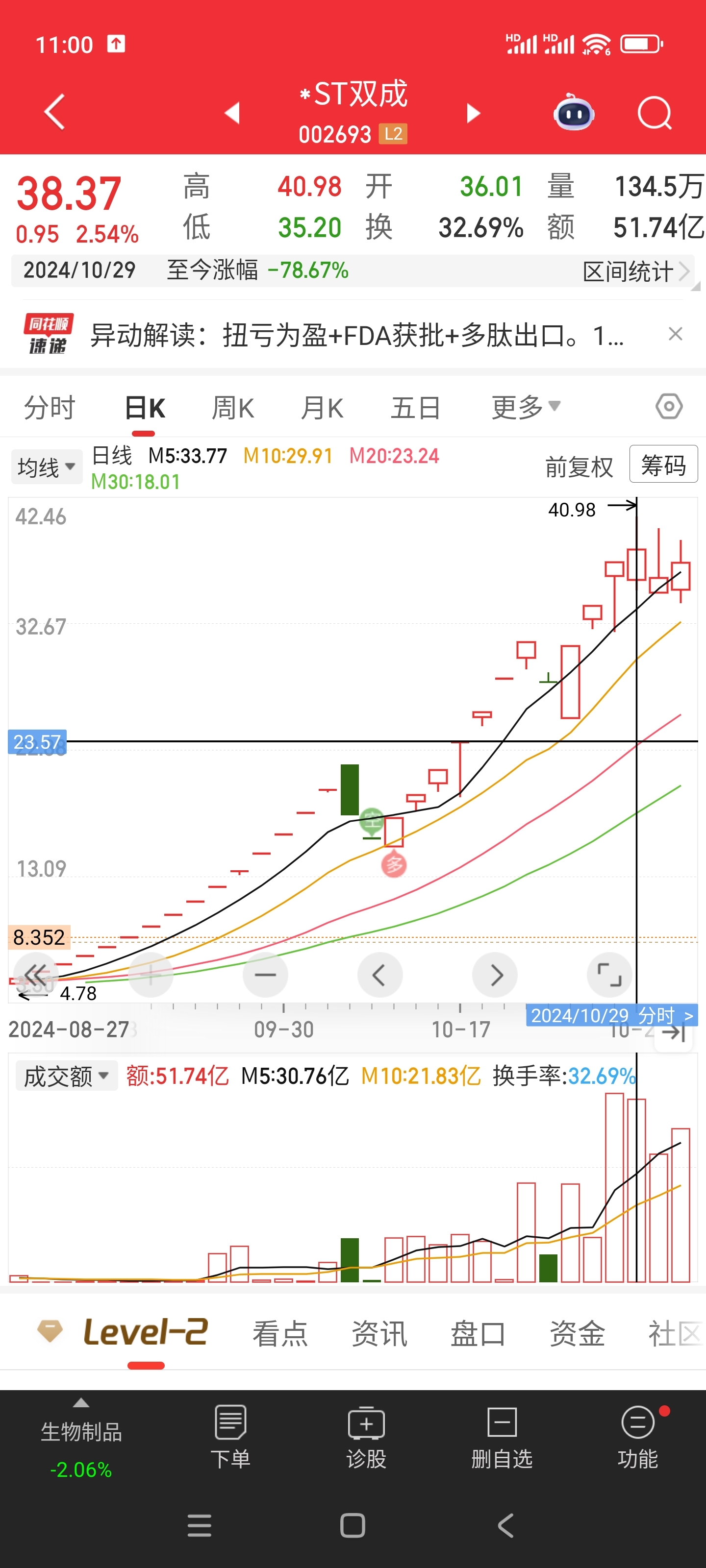 $*ST双成(SZ002693)$ 下次这个连续涨停的可能应该很快要来了
