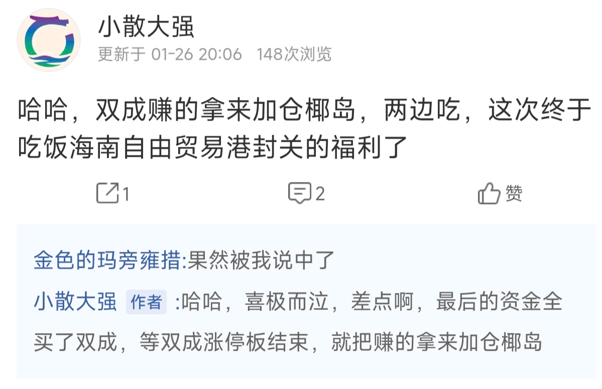 $*ST双成(SZ002693)$ 小散大强,拉黑我了,哈哈还想两边吃,