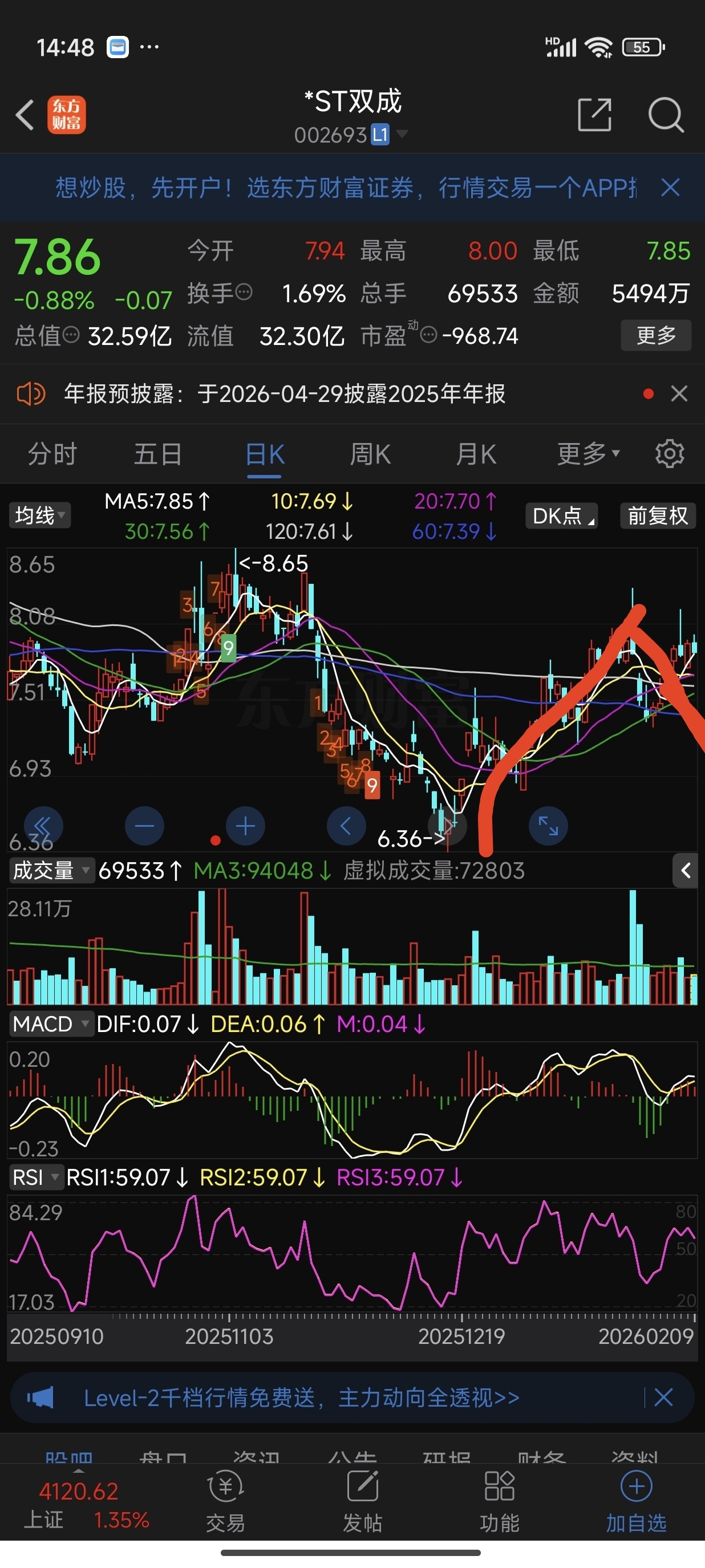 $*ST双成(SZ002693)$ 现在我在等二浪回调里面的C浪回调,回调完就可以进了。亿浪上涨已经走完了,现在是二浪回调,浪回调完成了a浪下跌,b浪上涨,现在开始C浪回调。这是一般的结构走势。