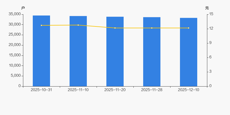2025年10月31日至今,公司股东户数有所下降,区间跌幅为3.36%。2025年10月31日至2025年12月10日区间股价下降4.33%。