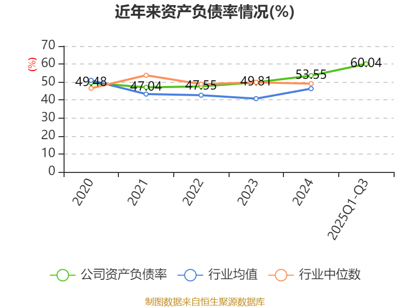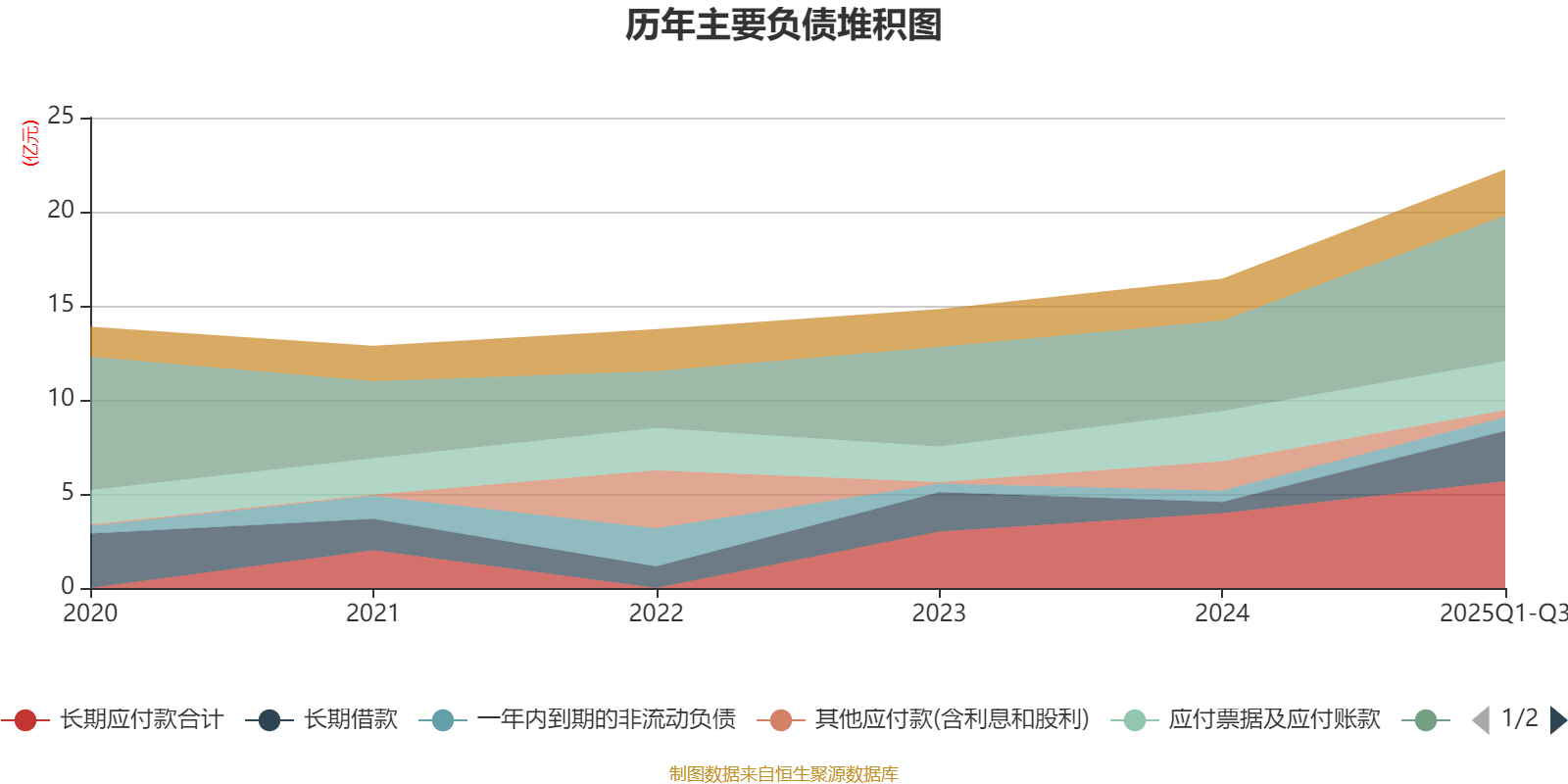 负债重大变化方面,截至2025年三季度末,公司长期借款较上年末增加347.44%,占公司总资产比重上升5.26个百分点;短期借款较上年末增加60.97%,占公司总资产比重上升5.21个百分点;其他应付款(含利息和股利)较上年末减少75.64%,占公司总资产比重下降4.08个百分点;长期应付款合计较上年末增加42.9%,占公司总资产比重上升2.38个百分点。