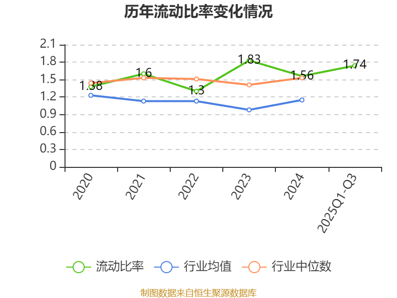 2025年前三季度,公司流动比率为1.74,速动比率为1.01。