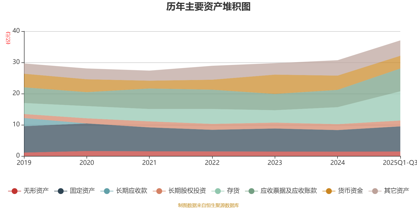 资产重大变化方面,截至2025年三季度末,公司存货较上年末增加72.11%,占公司总资产比重上升7.56个百分点;货币资金较上年末减少10.72%,占公司总资产比重下降3.87个百分点;应收票据及应收账款较上年末增加31.56%,占公司总资产比重上升1.62个百分点;在建工程合计较上年末减少45.19%,占公司总资产比重下降1.57个百分点。