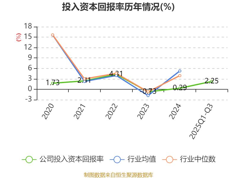 盈利能力方面, 2025年前三季度公司加权平均净资产收益率为2.63%,同比上升4.84个百分点。公司2025年前三季度投入资本回报率为2.25%,较上年同期上升3.5个百分点。