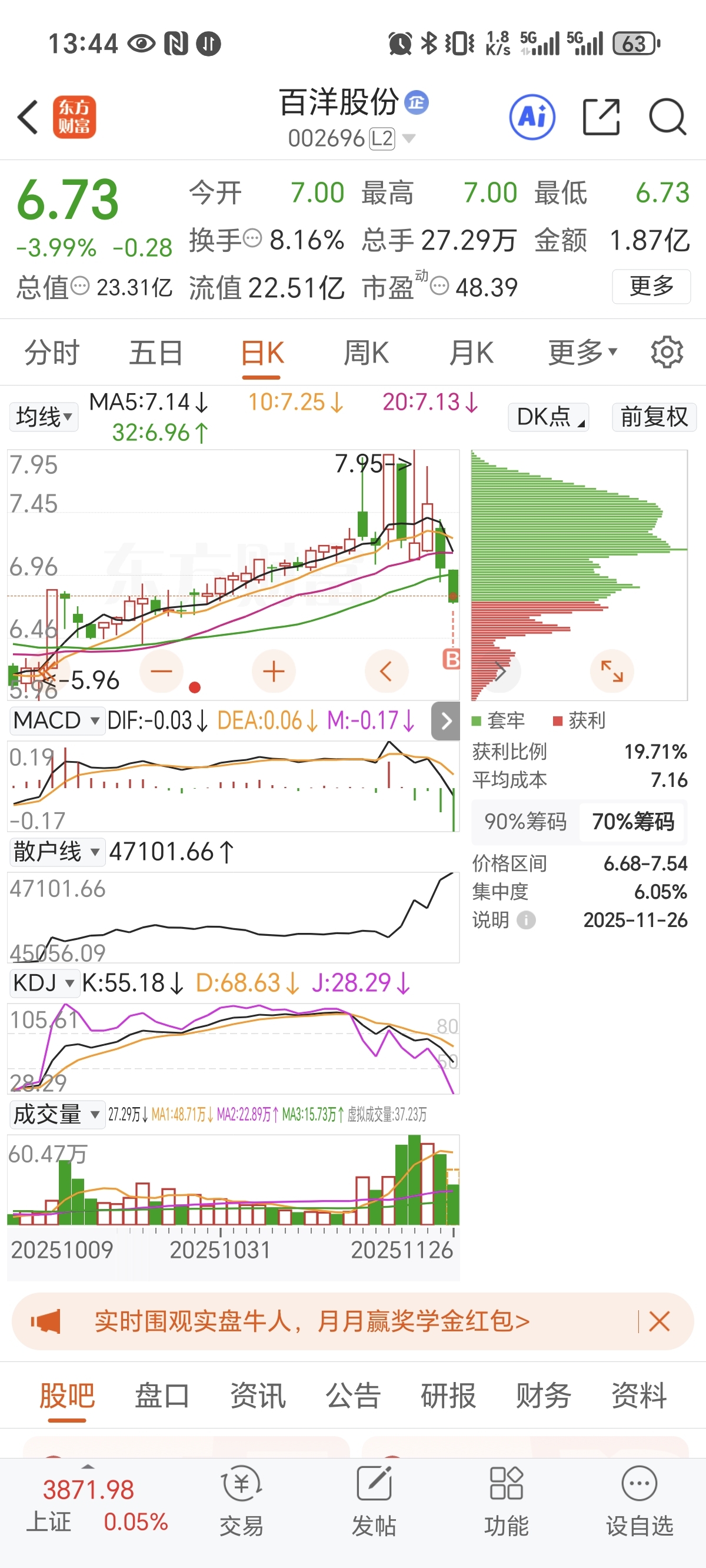 $百洋股份(SZ002696)$ 还想着抄底,估计要成长线了
