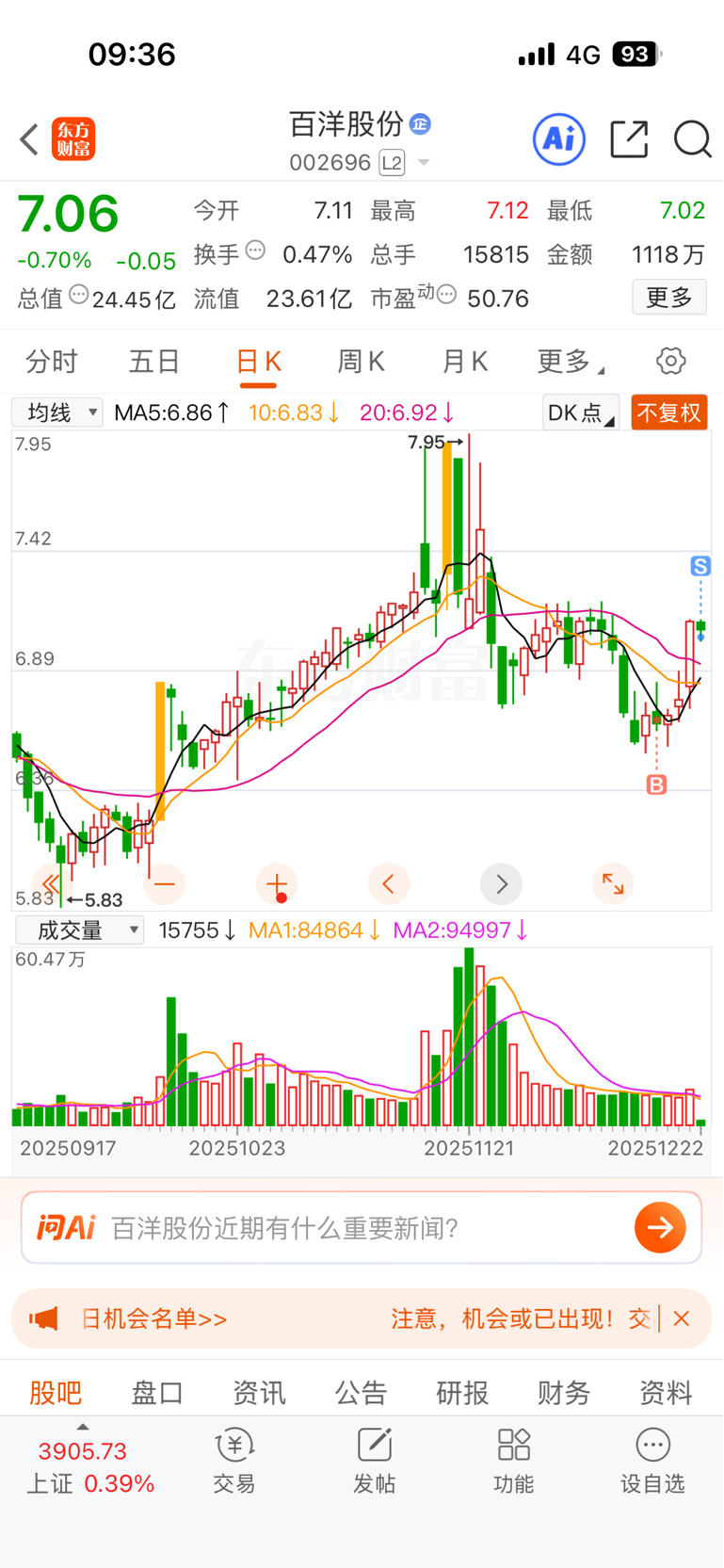 $百洋股份(SZ002696)$ 阶段性止盈,今天去科技,祝车上兄弟们发财