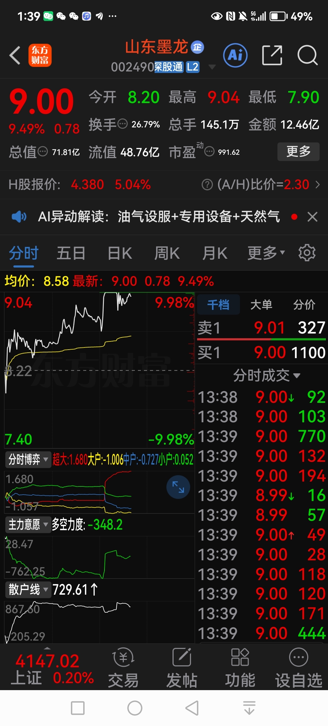 上。马上涨停。。