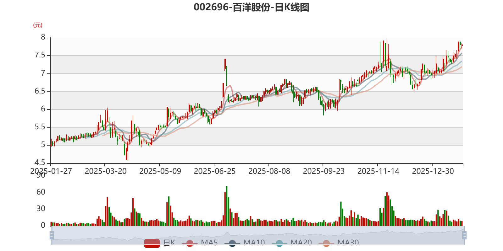 中证智能财讯百洋股份(002696)1月26日晚间披露2025年度业绩预告,预计2025年归母净利润4100万元至5200万元,上年同期亏损1525.42万元;扣非净利润预计2300万元至3400万元,上年同期亏损2280.49万元;基本每股收益0.12元/股-0.15元/股。以1月26日收盘价计算,百洋股份目前市盈率(TTM)约为51.95倍-65.89倍,市净率(LF)约1.97倍,市销率(TTM)约0.69倍。