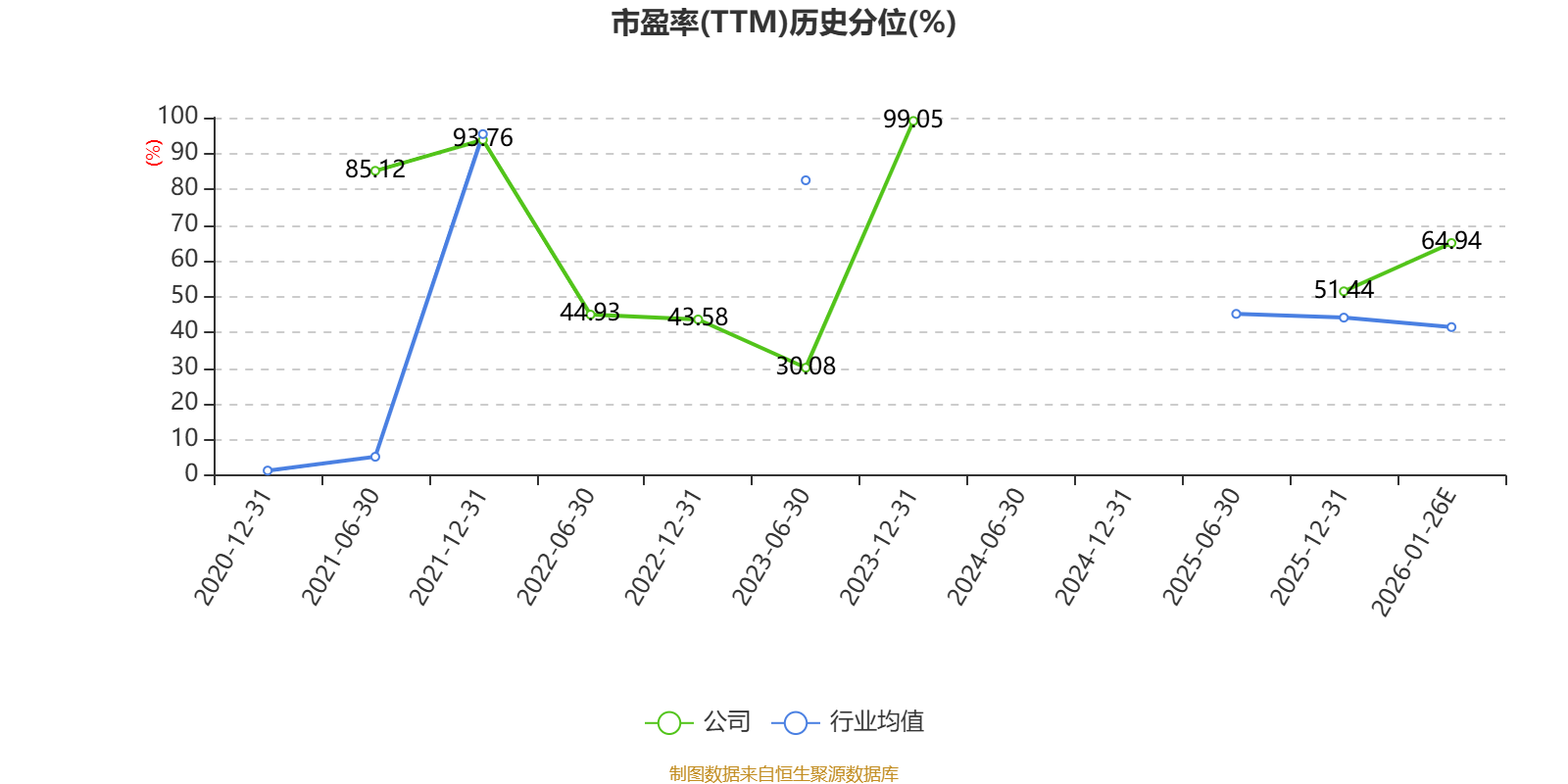 以本次披露业绩预告均值计算,公司近年市盈率(TTM)图如下所示: