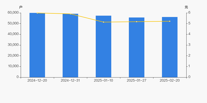 截至2025年2月20日,公司最新总股本为13.6亿股,其中流通股本为10.78亿股。户均持有流通股数量由上期的1.93万股下降至1.92万股,户均流通市值10.02万元。