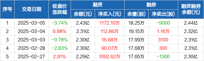红旗连锁:连续5日融资净买入累计2484.33万元(03-05)