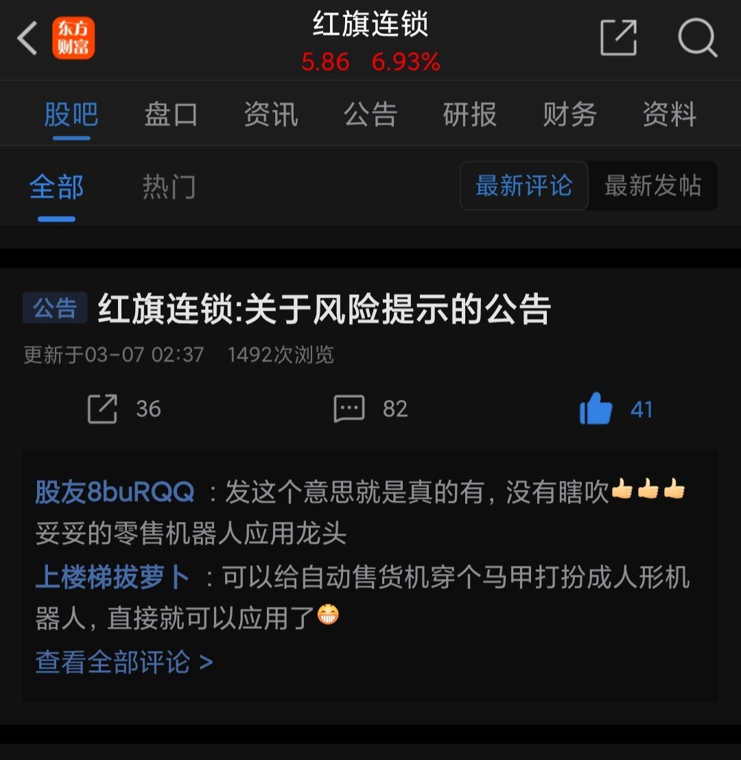 温馨提示: 1.根据《证券法》规定,禁止编造、传播虚假信息或者误导性信息,扰乱证券市场;2.用户在本社区发表的所有资料、言论等仅代表个人观点,与本网站立场无关,不对您构成任何投资建议。用户应基于自己的独立判断,自行决定证券投资并承担相应风险。《东方财富社区管理规定》