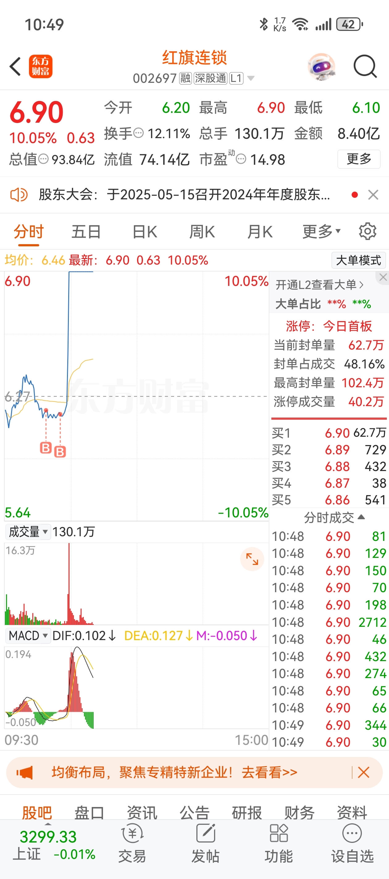 $红旗连锁(SZ002697)$ 运气不错,感谢