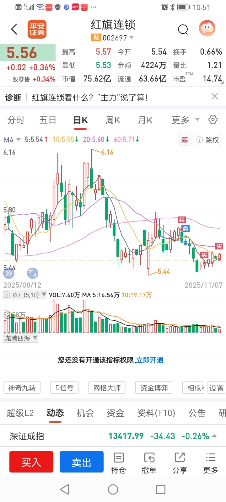 $红旗连锁(SZ002697)$ 重新进来