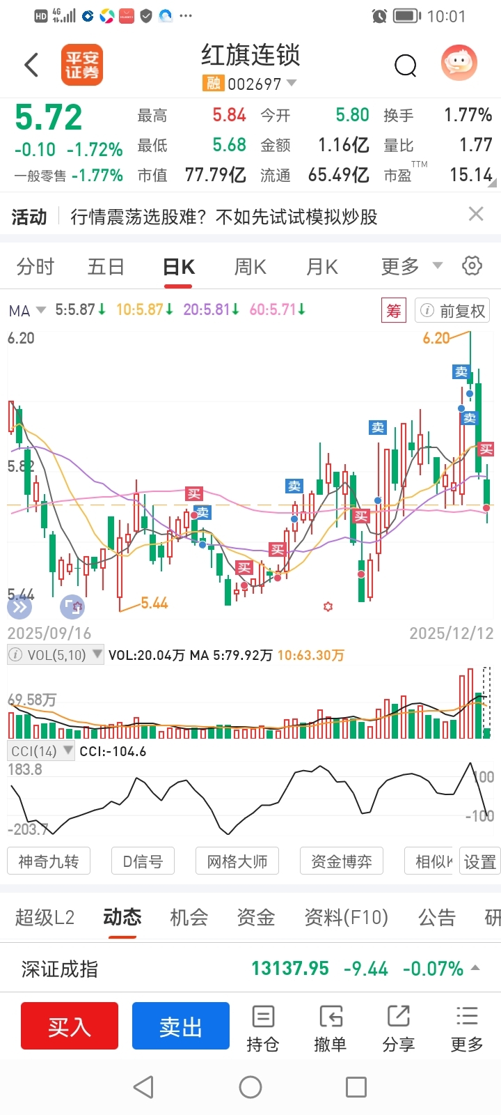$红旗连锁(SZ002697)$ 条件单自动买回来