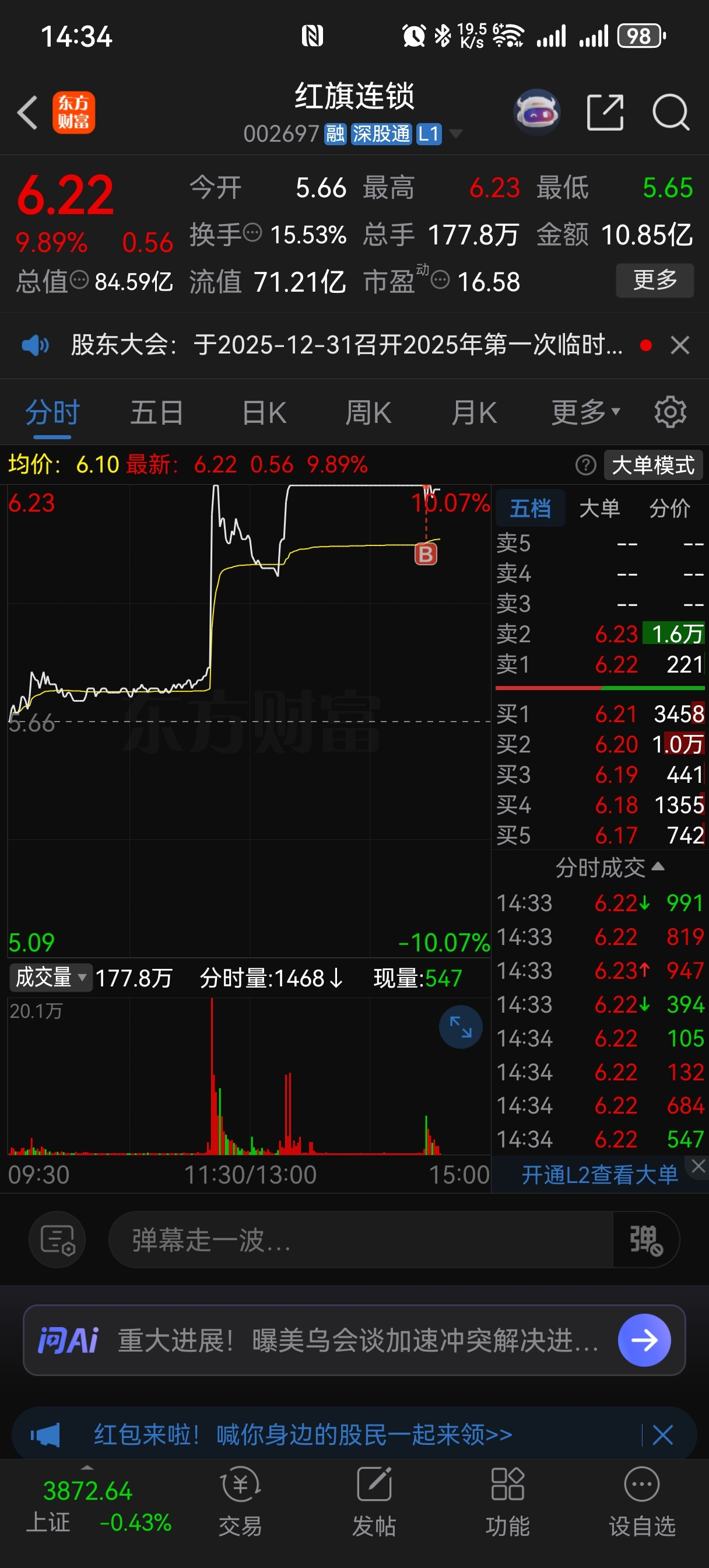 $红旗连锁(SZ002697)$ 你炸了又炸,我碎了又碎