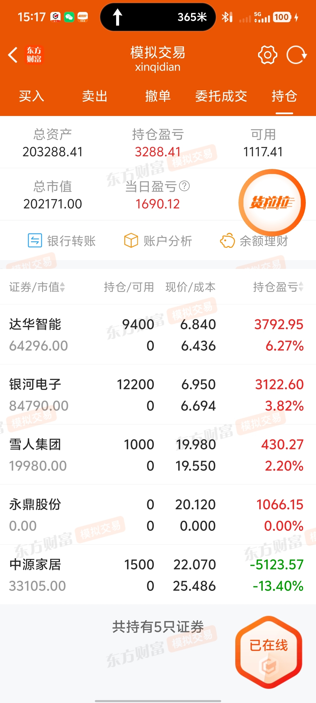 一天搞点模拟仓挺好,那中源周五买的早晨说卖结果点成买了,幸好是模拟仓,一天挺高兴