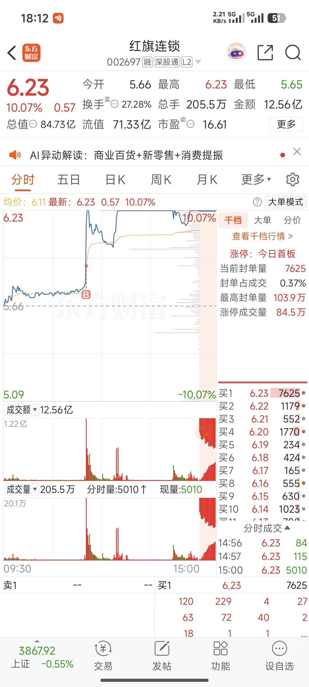 $红旗连锁(SZ002697)$ 明天可以安全落地嘛