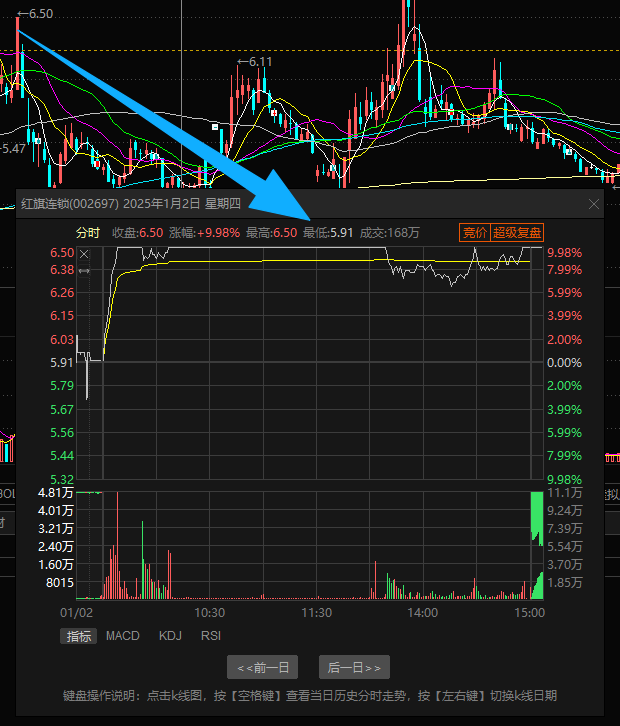 参考2025.01.02日的K线分时图,之后的走势,明天大概率地板