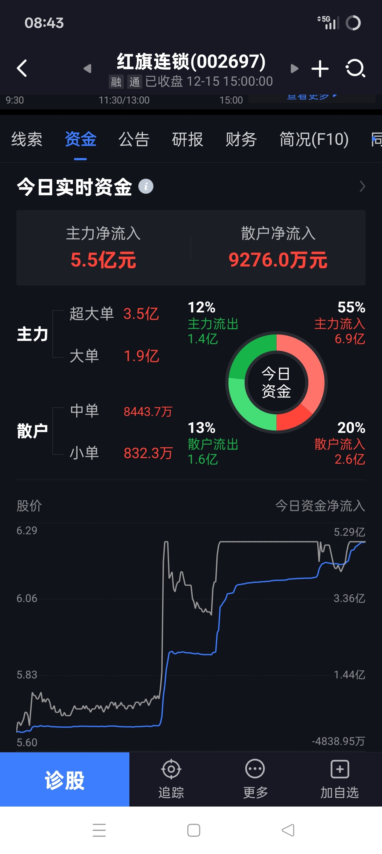$红旗连锁(SZ002697)$ 新零售板块里的后期补涨,主力五个亿流入,今天预计问题不大