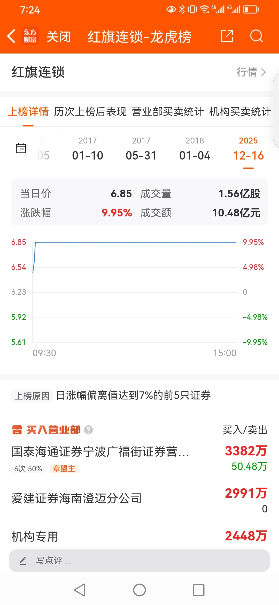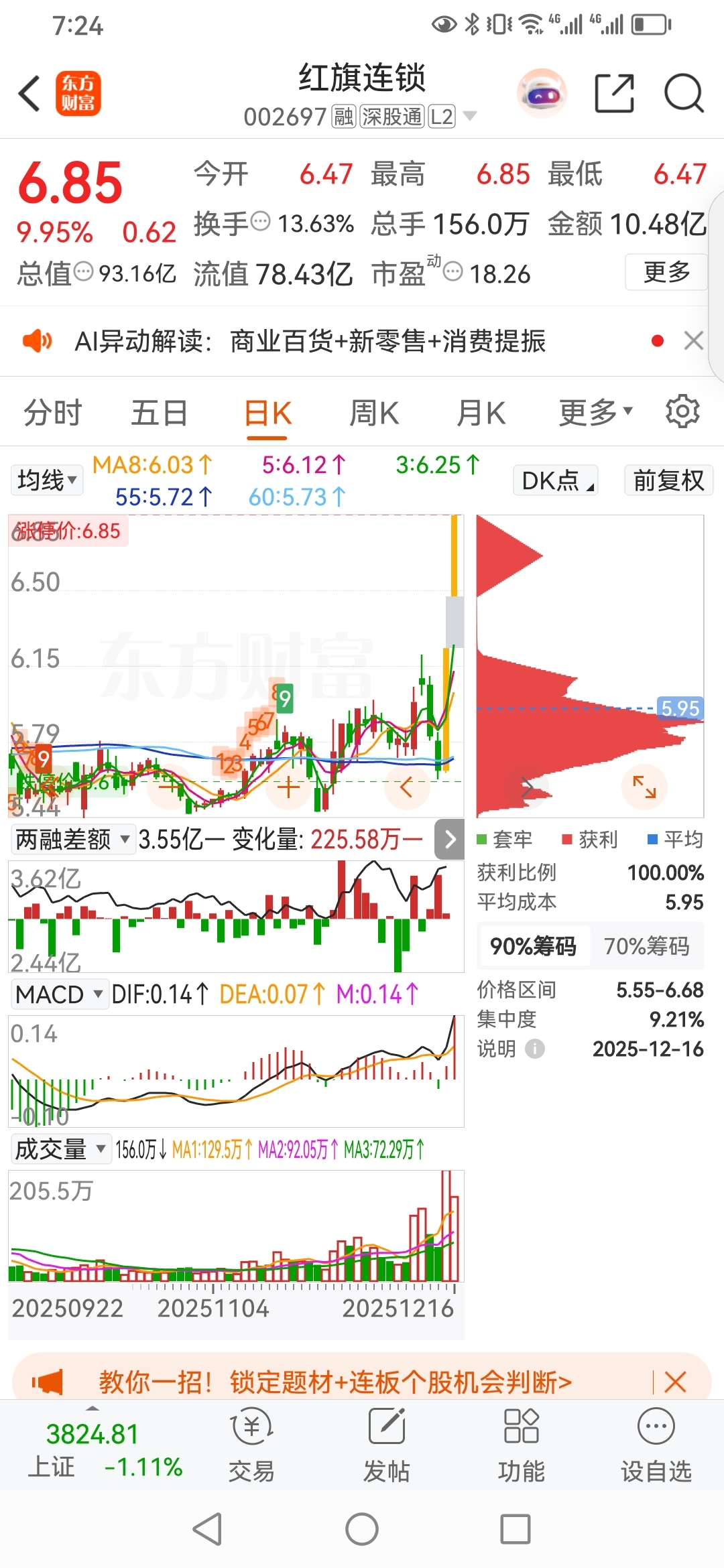 @妙想题材分析红旗连锁军哥,今天融资买进红旗连锁。