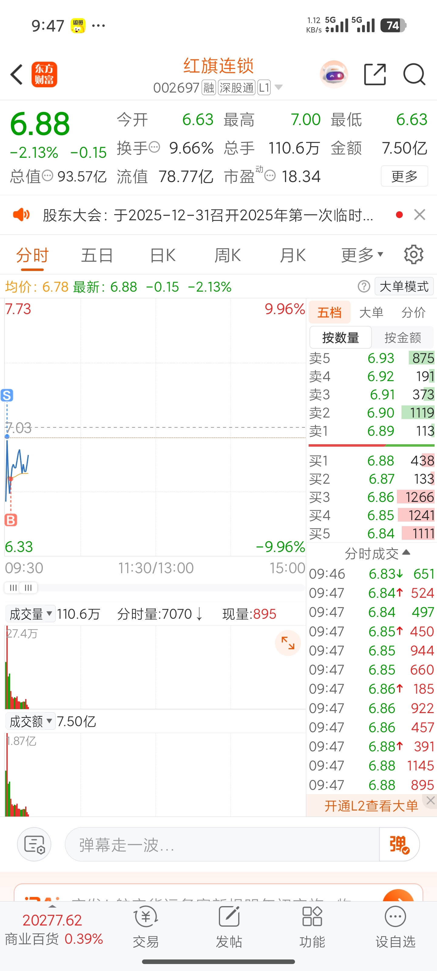 $红旗连锁(SZ002697)$ 熟悉股票行为