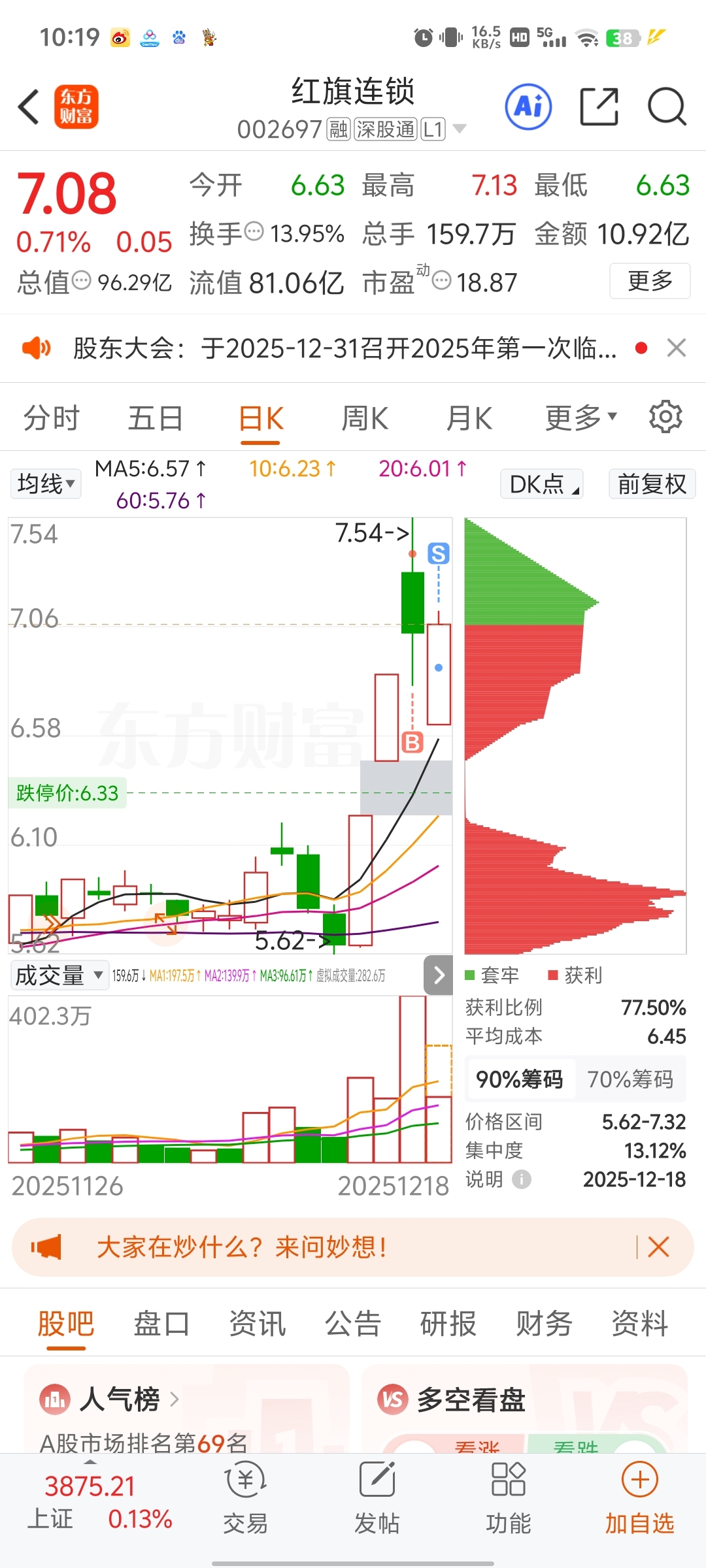 $红旗连锁(SZ002697)$ 奉劝诸位要买就买龙头,死杂毛跌的快涨的慢
