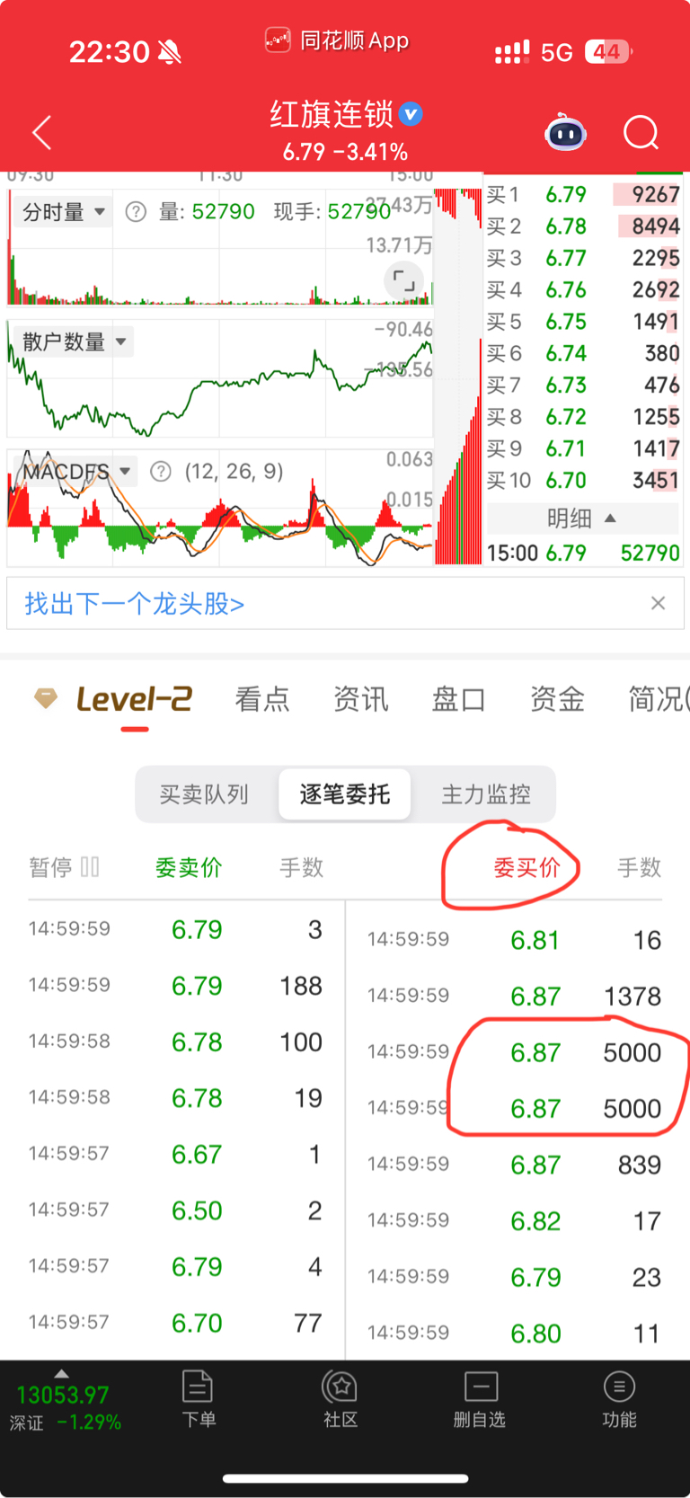 $红旗连锁(SZ002697)$ 这尾盘万手抢筹 真金白银的 骗不了人吧?