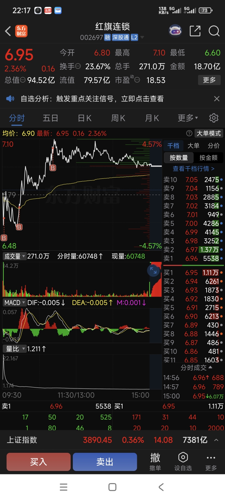 $红旗连锁(SZ002697)$ 明天10点前不拉板就清