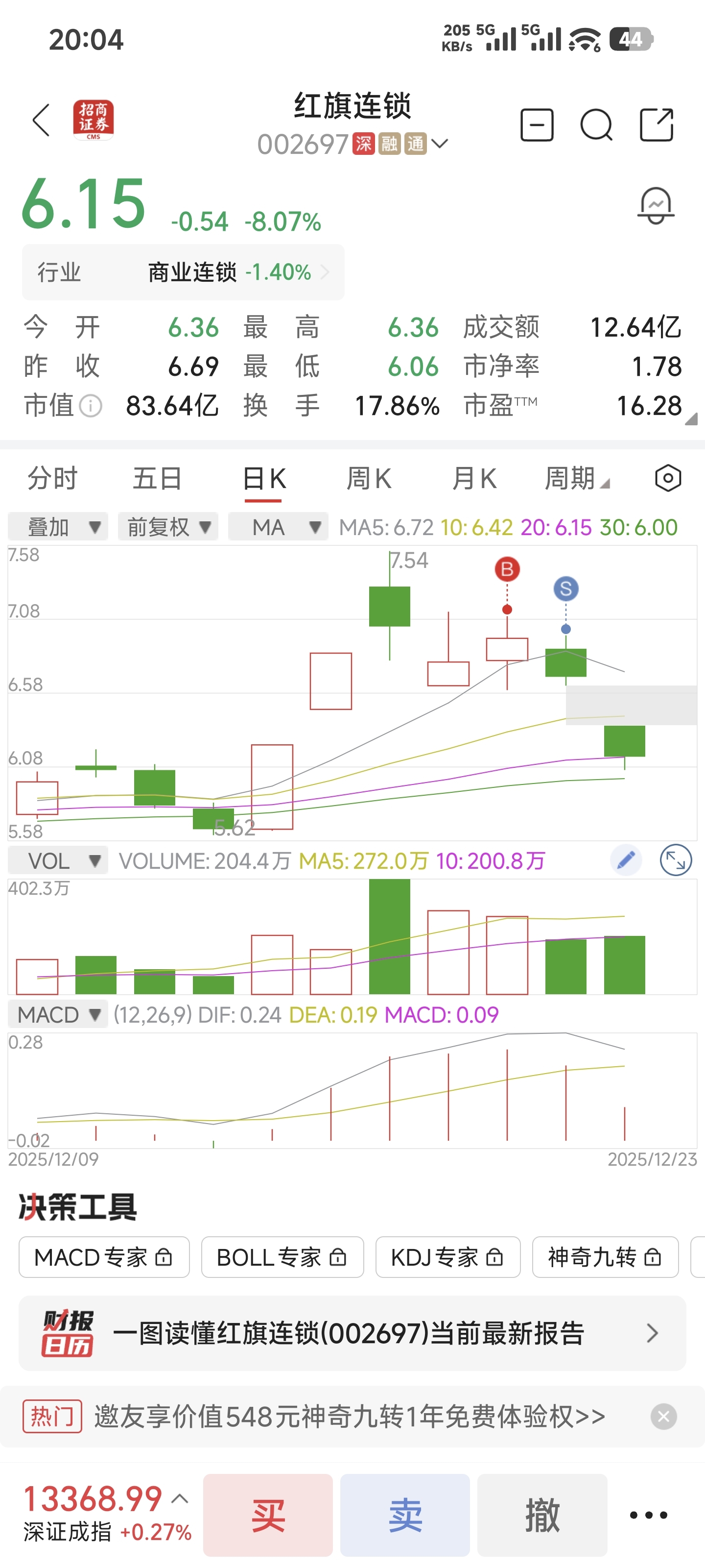 $红旗连锁(SZ002697)$ 还好只亏了百分之三,明天抄底。