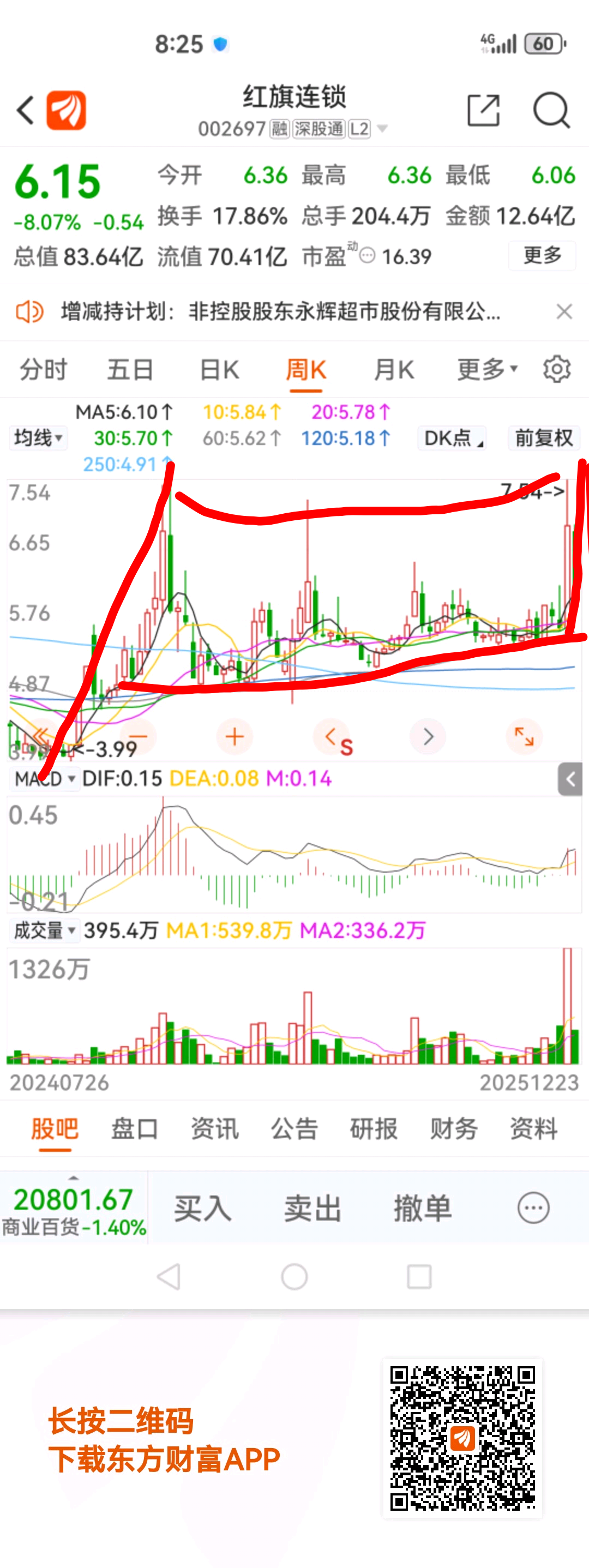$红旗连锁(SZ002697)$ 很标准的一面红旗