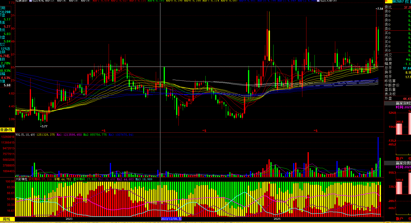 周线位置风险不大,这行业热度不错,盘子大小适中。已倒手够了。缺点这业绩票套利机构太多,太多量化吸附喝血